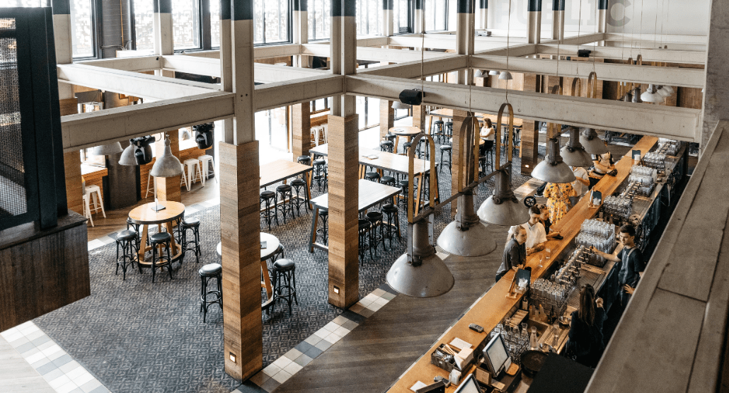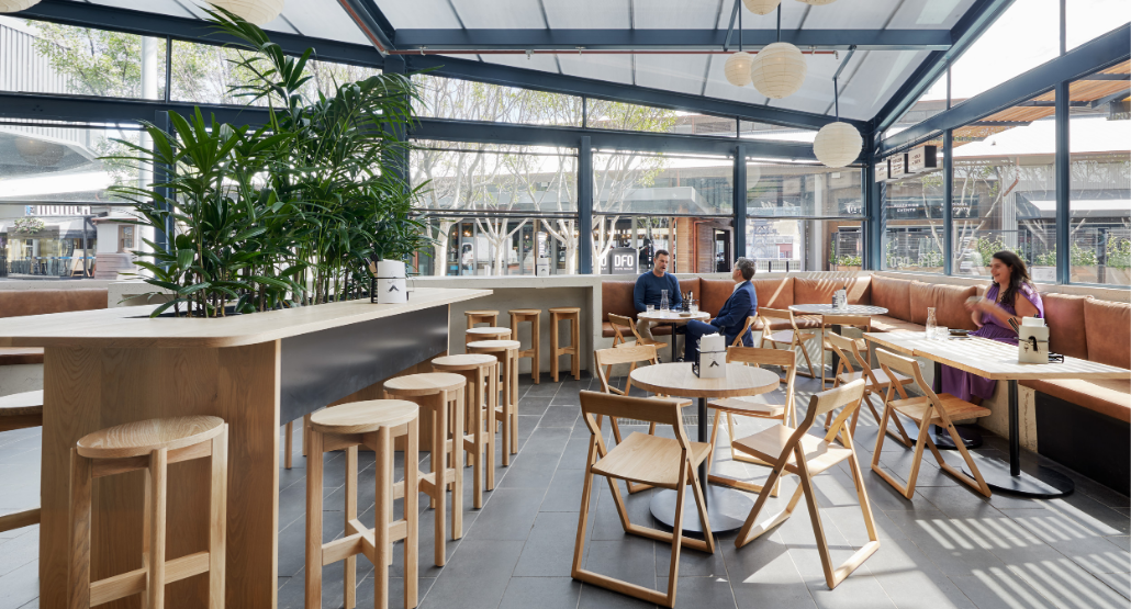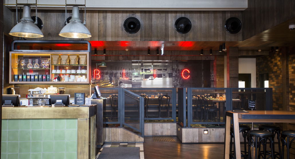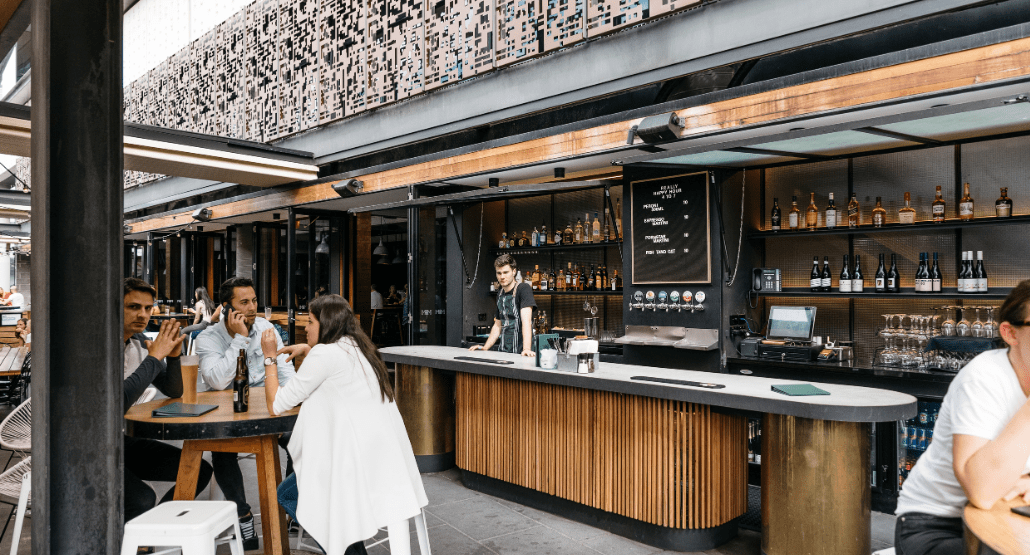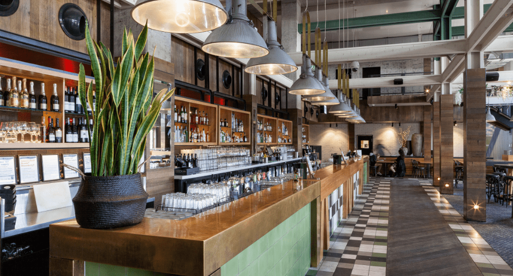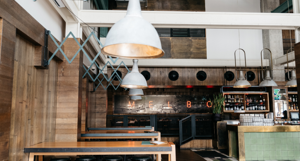 This dynamic area sees the iconic industrial flair of Melbourne Public injected into the décor, boasting striking industrial light fittings, exposed beams and high bar tables and stools.
